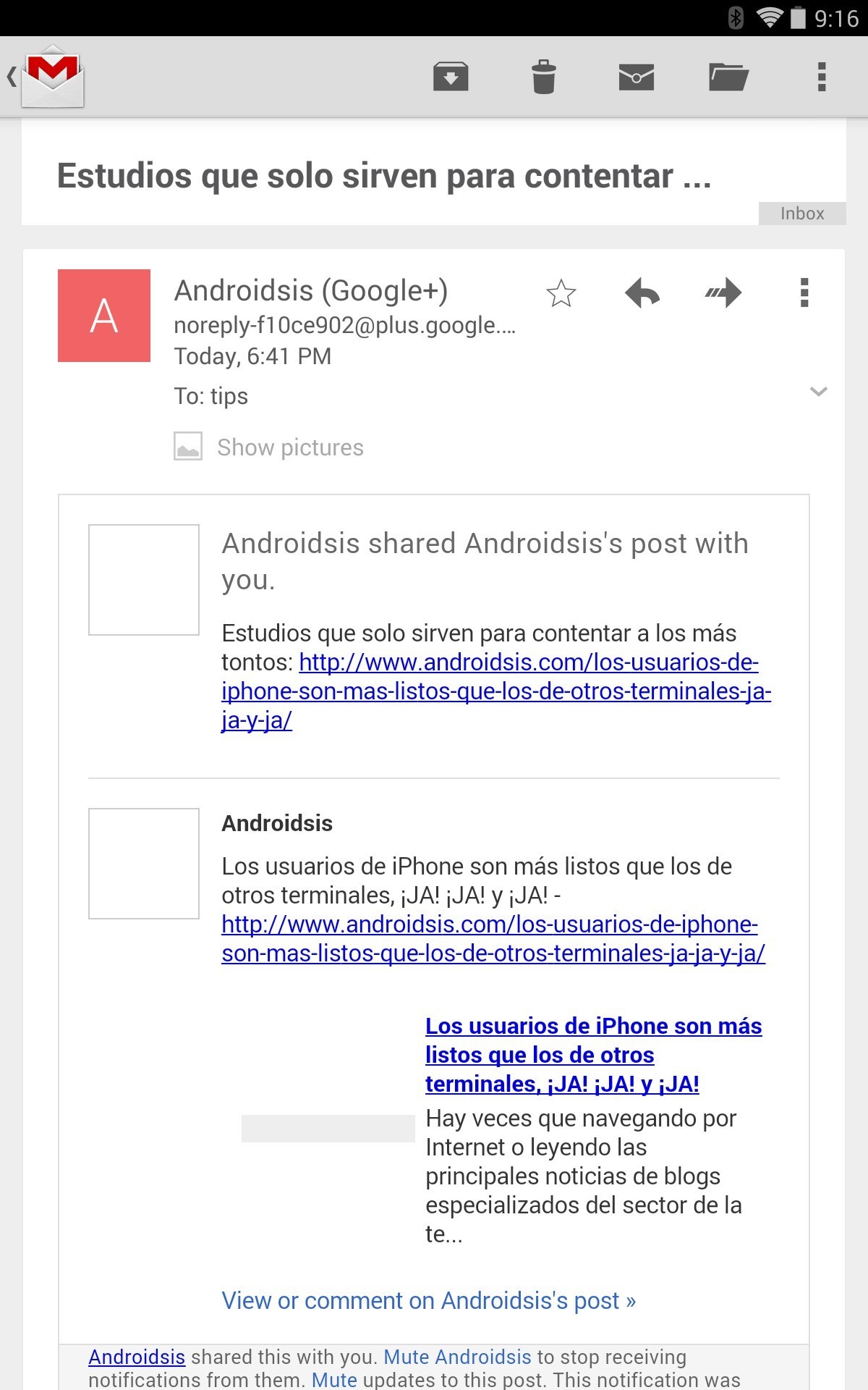 Dopo aver aggiornato la versione web, da poche ore è iniziato il roll out mondiale del nuovo aggiornamento 4.7.2 di GMail per dispositivi Android che introduce la nuova funzionalità di visualizzazione automatica delle immagini presenti nelle mail.