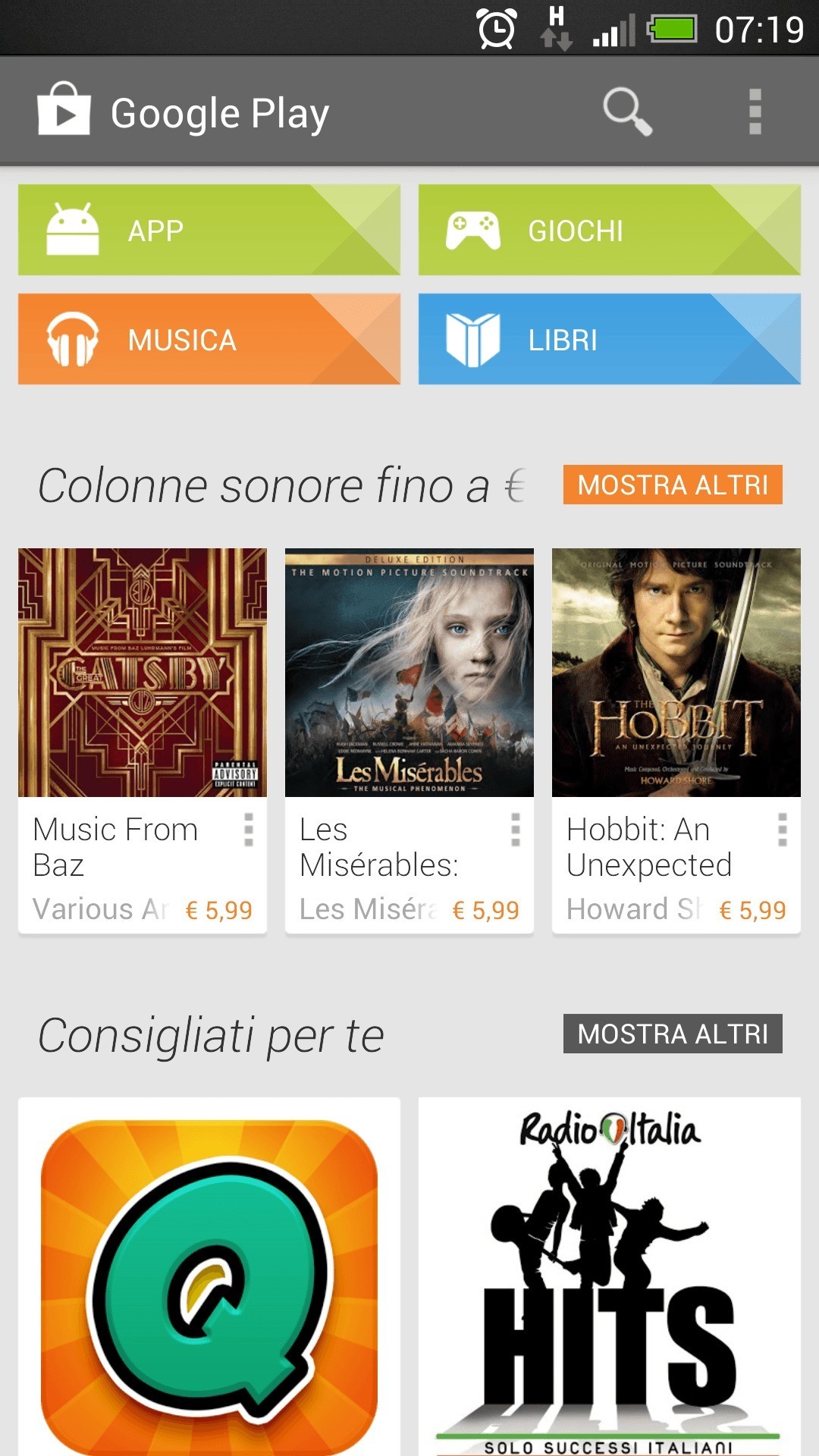 Il nuovo update 4.1.6 del Google Play Store infatti porta con se un piccolo restyling dei tasti “App,Giochi,Musica e Libri” che ora riprendono i colori delle varie sezioni al posto del bianco visto fino ad ora. Google ha modificato poi i tasti “Apri” ed “Installa” separandoli maggiormente in modo da facilitarne il tap, ed è stata rivista anche la sezione “La mia lista dei desideri” che ora mostra le nostre scelte suddivise su tre colonne.