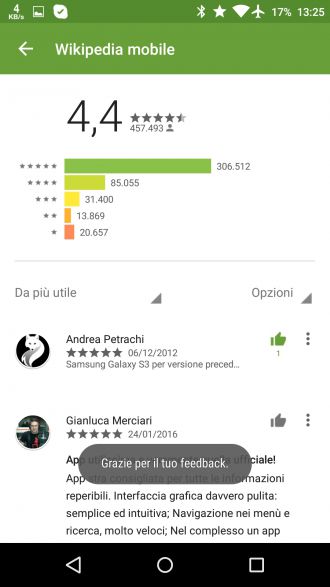 La seconda novità, riguarderà il Play Store: a breve infatti, gli utenti potranno esprimere anche su smartphone, un personale giudizio sulle recensioni di applicazioni scritte da altri utenti tramite il popolare tasto “mi piace”.