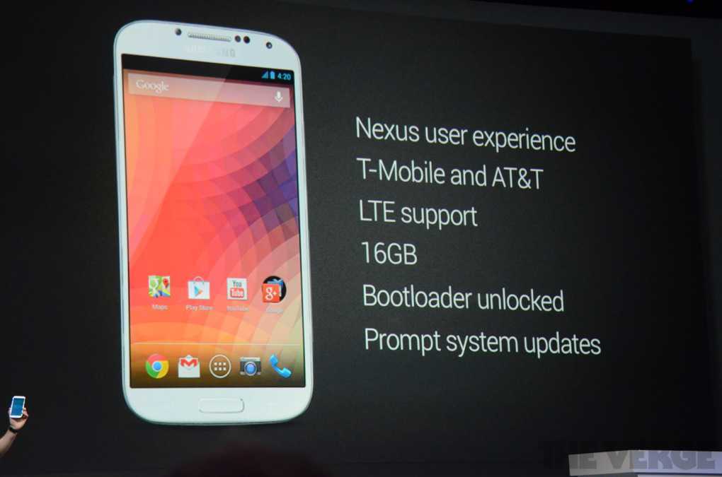 Google ha appena annunciato in diretta durante l’evento Google I/O l’arrivo per il 26 Giugno per il mercato Americano di un Samsung Galaxy S4 molto particolare.