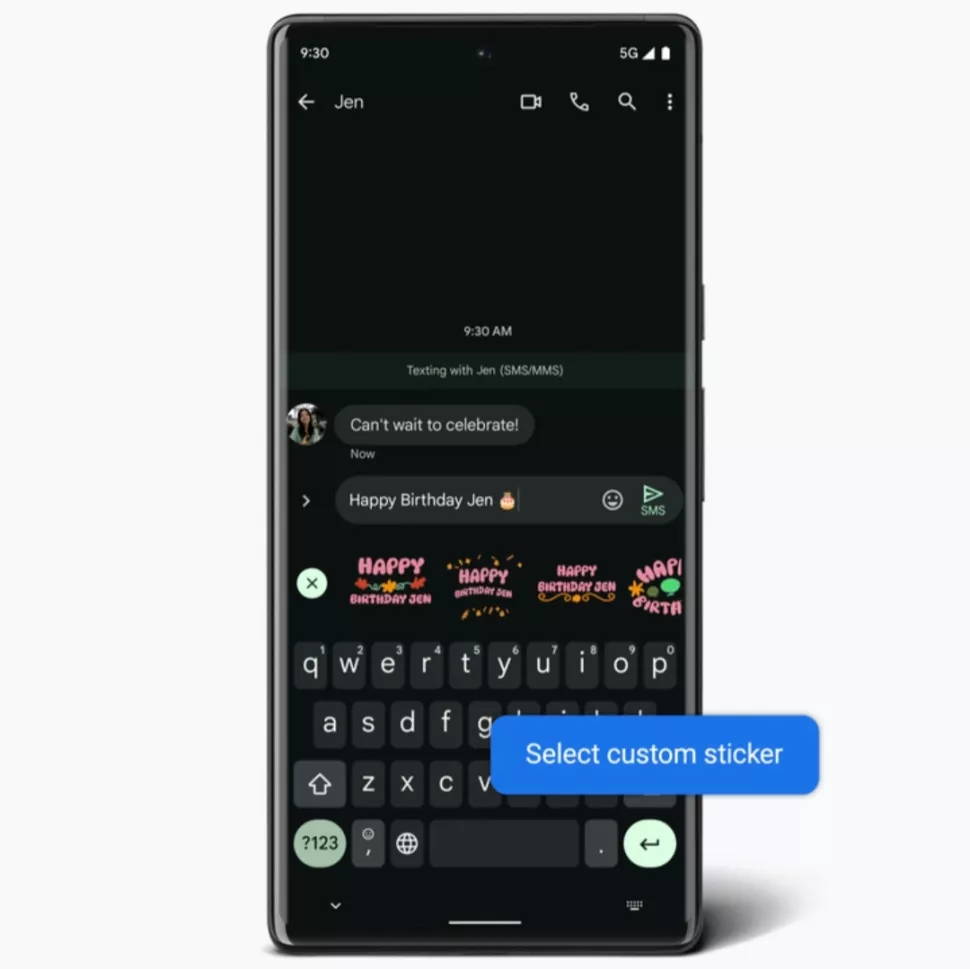 Gli adesivi personalizzati sono una delle nuove funzionalità arrivate di recente su Gboard. La funzione consente agli utenti di convertire facilmente qualsiasi testo in un adesivo divertente, aggiungendo un tocco personale a un saluto o a un testo celebrativo. La funzione era precedentemente esclusiva per gli smartphone Pixel, ma Google abiliterà presto la funzione su tutti gli smartphone Android.