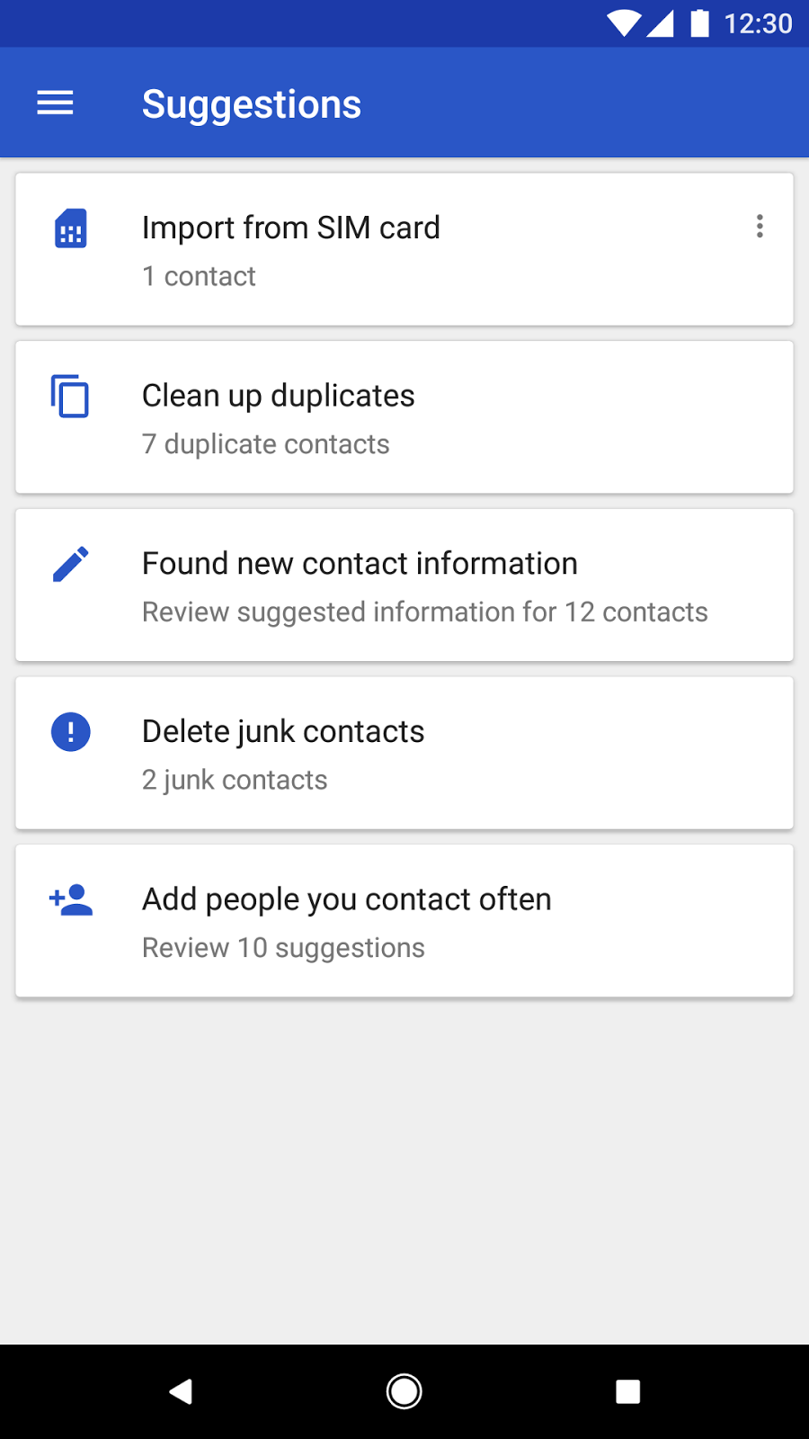 Anche la scheda dei suggerimenti è stata modificata, infatti adesso Google Contact 2.2 ci suggerisce frequentemente di aggiungere i contatti utilizzati con i vari servizi di BigG. Queste piccole notifiche verranno visualizzate sotto la scheda di riepilogo “Aggiungi persone che contatti spesso“.