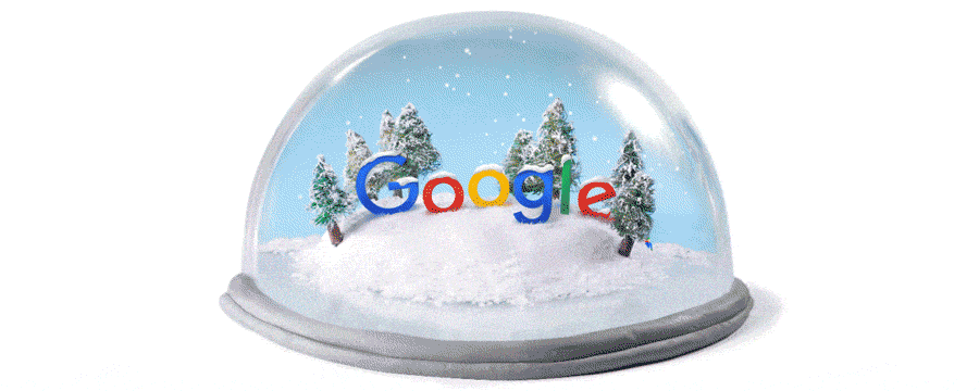 Il doodle animato di Google è una semplice sfera trasparente natalizia nella quale, al di sotto di una collina innevata, due pattinatori girano intorno felici mentre nevica tutto intorno a loro.