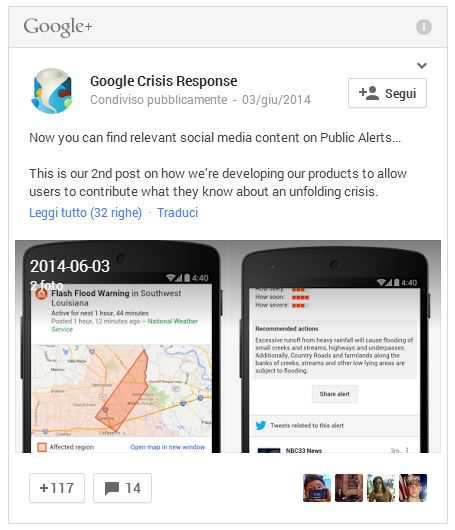 Le relazioni tra Google e Twitter non sono state molto “solide” in questi anni, sopratutto dopo l’arrivo del social network Google+ diretto concorrente di Twitter, ma le società mettendo da parte i propri interessi economici hanno deciso di creare una partnership per realizzare un sistema di allerta contro i disastri naturali che prevede la pronta segnalazione su Google Now e Google Maps dei tweet relativi ai messaggi pubblici di allerta.