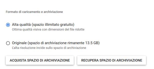 Come sanno bene coloro che utilizzano Google Foto da tempo, il servizio consente di archiviare le foto sia in modalità “qualità originale”, disponendo di un quantitativo di spazio limitato, sia in modalità “alta qualità”, leggermente compresso rispetto al primo ma che da accesso allo spazio illimitato offerto da Google. Indipendentemente dalla scelta fatta, in qualsiasi momento l’utente può scegliere di cambiare questa modalità di archiviazione, consentendo a Google Foto di gestire così nella modalità scelta, tutte le immagini che verranno successivamente archiviate.