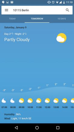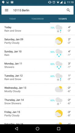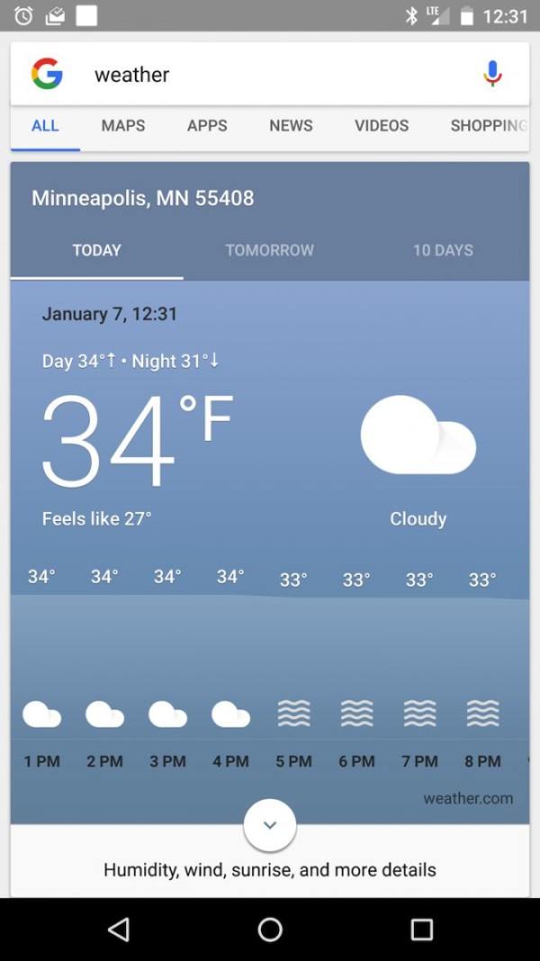La scheda meteo apparirà più come un’app a schermo pieno, dando la possibilità di accedere più comodamente alle singole informazioni divise in “Oggi”, “Domani” e “10 giorni”. I dati a disposizione non si limitano alla sola temperatura prevista, ma indicherà anche la qualità dell’aria, consigli sulla salute ed un gradevole grafico con gli orari dell’alba e del tramonto.