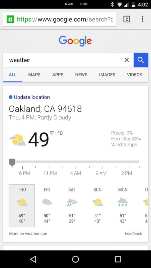 Al momento su Google Now, ci si trova davanti ad una scheda in stile minimalista che, seppur piacevole, risulta comunque troppo semplificata sia nei colori (sfondo bianco e scritte in nero) che nel layout, ma Google è intenzionata a rinnovare la scheda relativa alle previsioni meteo all’interno della sua App. Andiamo a scoprire in anteprima, alcune immagini e funzioni.