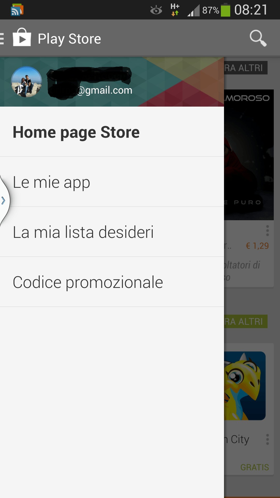 Con questa nuova versione di Android 4.4.21 Google ha introdotto il famoso tasto “hamburger” nella parte alta a sinistra che permette di accedere al menù dell’applicazione che presenta le seguenti voci: