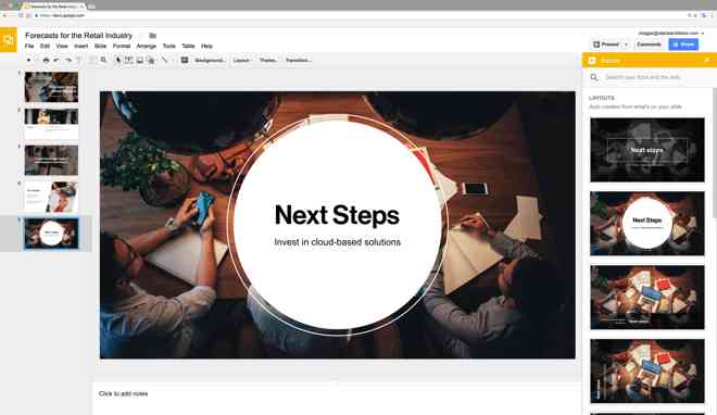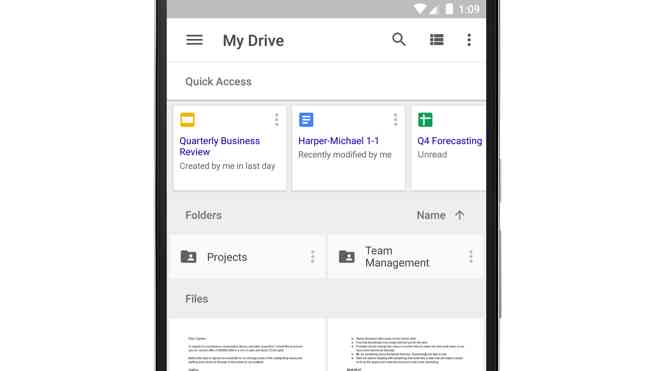 • Diane ha inoltre annunciato G Suite, un insieme di applicazioni per la condivisione e collaborazione che fanno uso di nuove funzionalità di machine learning come Team Drives ed Explore in Docs, Sheets and Slides