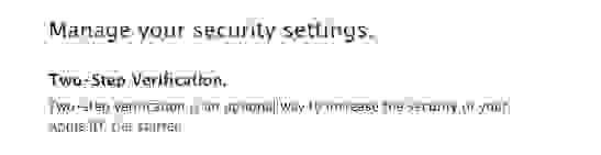 - La prima opzione sarà ora per la verifica in due passaggi. Clicca sul link blu etichettato Inizia …