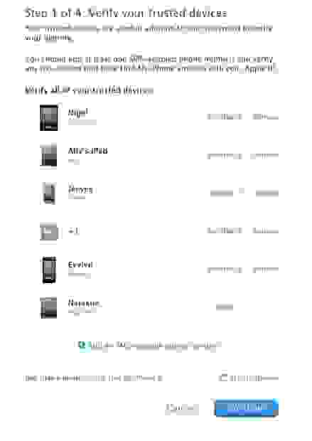- Una volta arrivati alla prima fase, verrà visualizzato un elenco dei dispositivi che hanno accesso al tuo account iCloud. Cliccare l’opzione di verifica accanto al dispositivo che si desidera verificare.