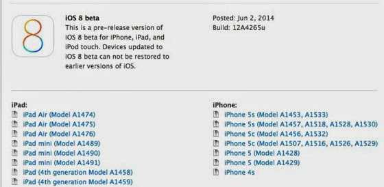 - Link Download iOS 8 Beta 1 per dispositivi Apple: