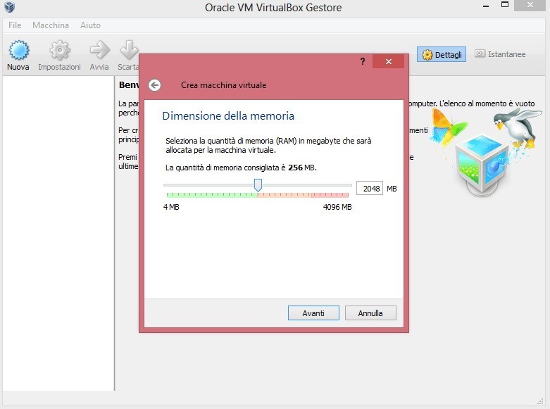 - In questa schermata va scelto il quantitativo di Ram a disposizione di Android 4.2 tra un minimo consigliato di 512MB e 2GB.