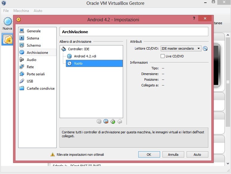 - Rimuovete il live iso dalle impostazioni riavviate VirtualBox e…. godetevi il vostro Android 4.2.2!
