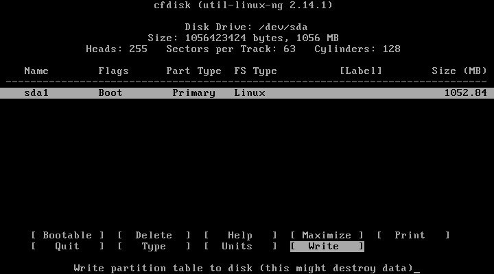 - Ora selezionate NEW quindi PRIMARYe BOOTABLE. Per confermare le scelte selezionare WRITE. Una volta terminata l’attività selezionate QUIT.