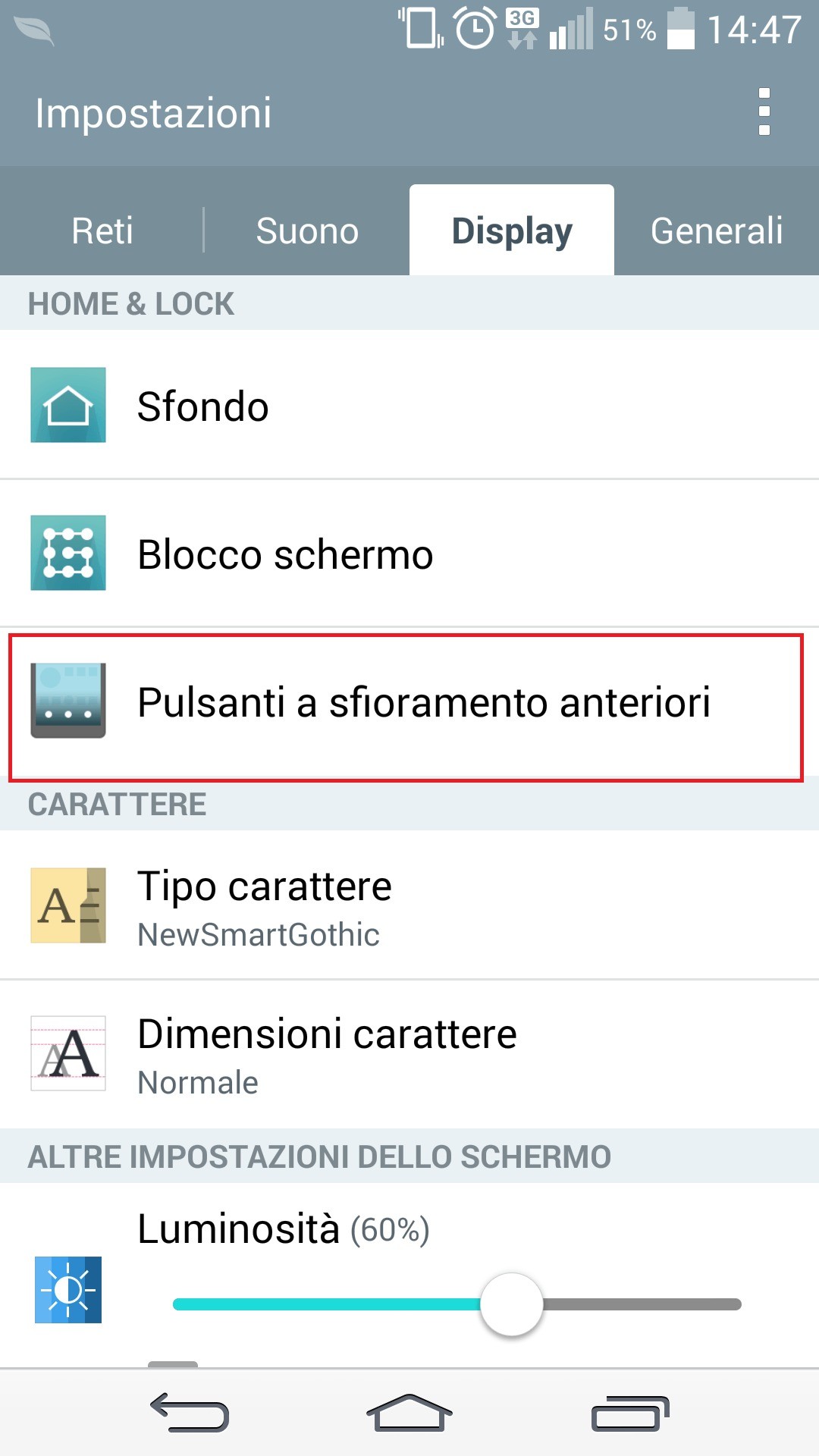 - Andare in Impostazioni -> Selezionare il tab Display -> Pulsanti a sfioramento anteriori