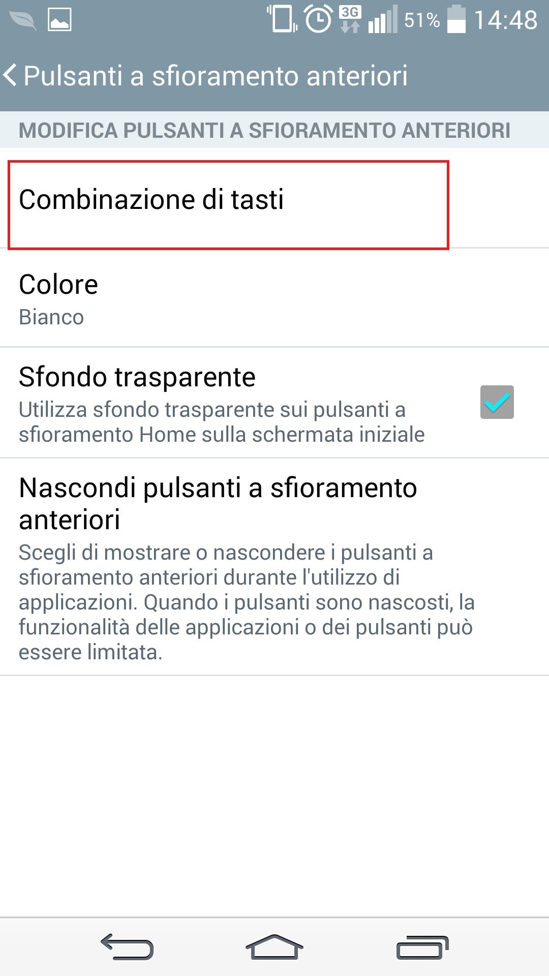 - Selezionando la voce Combinazione dei tasti, si ha accesso alla scelta delle varie icone