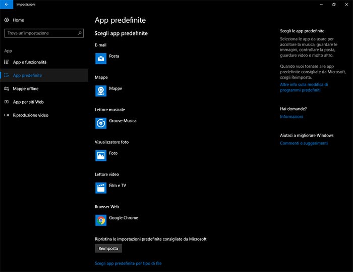 | Tasto WINDOWS + I | Aprire Impostazioni |