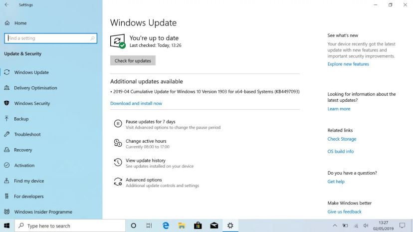 - Build 1903 (OS build 18362) – rilasciata il 22 maggio 2019 (May Update)