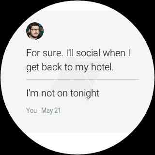 Nei dispositivi indossabili  la nuova app “da polso” cambierà grafica in stile Material Design, allineandosi a quanto visto fin’ora su Android Wear e integrerà numerose funzioni, tanto da non dover “quasi più”  passare allo smartphone. Potremo cliccare sulle conversazioni e leggerle interamente, anche se le immagini anvora non verranno visualizzate (ne verrà indicata solo la presenza), avremo a disposizione una serie di risposte predefinite e protemo inserire tutta una serie di emoji  e rispondere anche in vocale.
