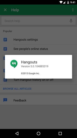 Google ha rilasciato da alcune ore il nuovo Hangouts 5.0 per Android, che nonostante la numerazione da “major release“, non porta con se importanti novità anche se come sempre, Big G non ha rilasciato un changelog ufficiale delle novità integrate.