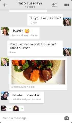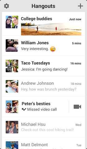 Hangouts è entrato prepotentemente nel settore mobile grazie alla facilità d’uso e a funzionalità uniche quali la possibilità di effettuare videochiamate fino a 10 utenti, la sincronizzazione tra pc, tablet e smartphone della stessa utenza così da avviare o continuare a partecipare ad una conversazione da qualsiasi dispositivo, posticipare le notifiche quando si preferisci non essere disturbati dagli avvisi e molto altro ancora.