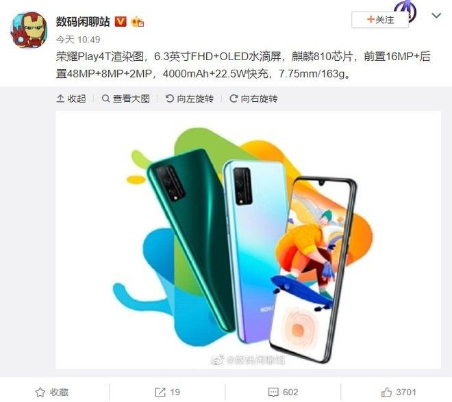 Il nuovo dispositivo porta il nome di Honor Play 4T, che alcuni avevano inizialmente scambiato per il prossimo Honor 30 Lite grazie ad una fugace comparsa su Teena.