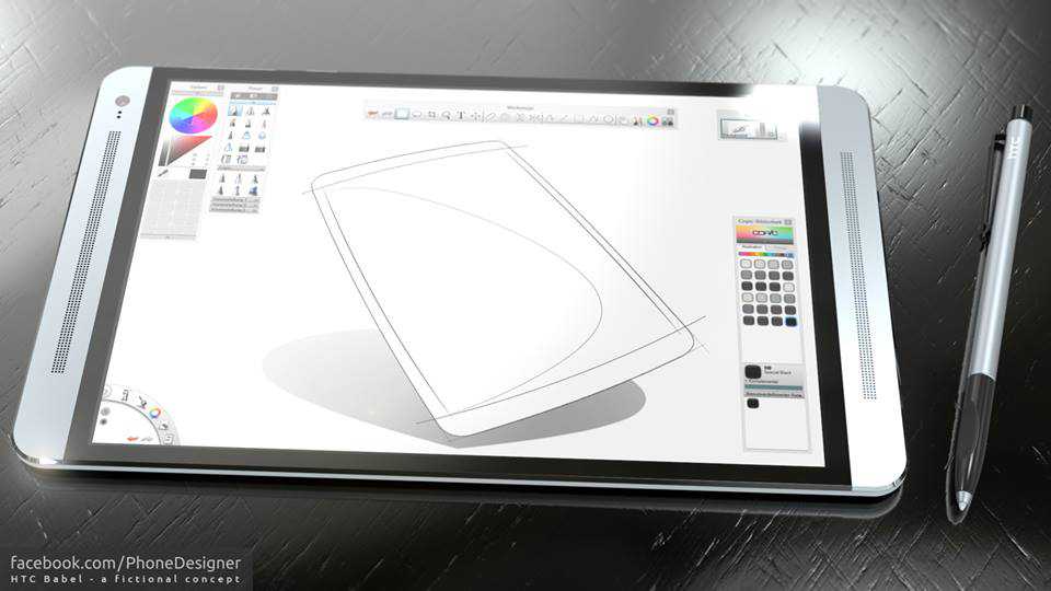 Il concetto di HTC Babel mette in mostra un dispositivo con uno schermo da 10 pollici con un rapporto di 3:2, con due possibili risoluzioni 1920 x 1440p e 2560 x 1920p.Il Babel ha un corpo in alluminio, che ricorda molto l’estetica di design del HTC One e del Desire. Il Babel nonha un sensore di impronte digitali posteriore come il phablet HTC One Max fa, ma presenta gli altoparlanti BoomSound. Inoltre è incluso un pennino, cosa che sarebbe una prima assoluta per HTC.