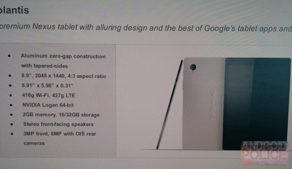 Appare online l’immagine raffigurante un tablet con relative specifiche, dal nome in codice HTC Volantis, che potrebbe rappresentare il futuro Nexus 9. Come possiamo vedere dall’immagine, sarà un tablet da 8.9 pollici e dovrebbe dunque rivaleggiare con l’iPad mini.