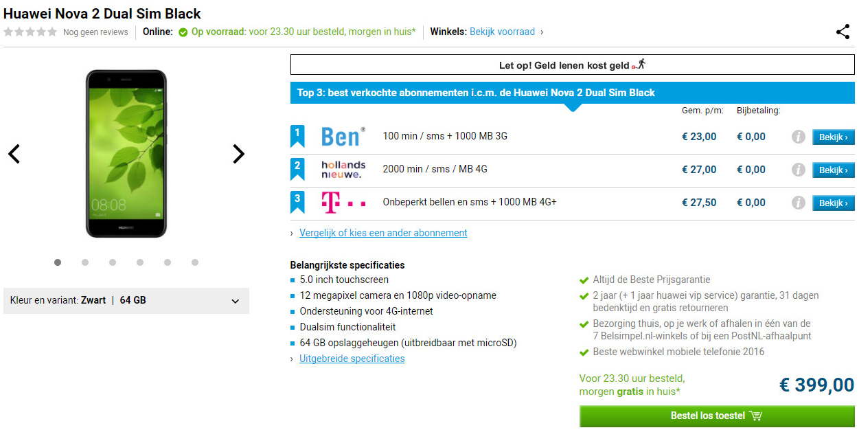 Infatti, potrebbe essere uno dei telefoni mostrati durante la fiera IFA 2017 di inizio settembre, ci aspettiamo quindi che l’azienda cinese possa offrire maggiori dettagli circa la sua disponibilità sul nostro mercato. La nota dolente, però, sembra essere il prezzo che per questo Huawei Nova 2 tocca addirittura i 400 euro come è possibile vedere dall’immagine sottostante.