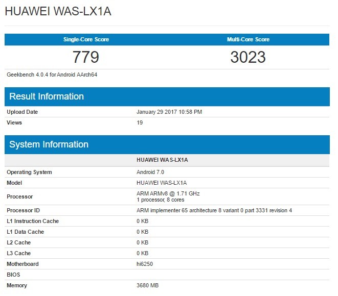 Il SoC che alimenterà il dispositivo sarà un ottimo HiSIlicon Kirin 655 affiancato da un quantitativo di RAM pari a 4GB. Grazie a questa configurazione il dispositivo riesce a registrare su GeekBench un punteggio di 779 punti in Single Core e 3023 punti in Multi Core. Con l’avvicinarsi dell’evento arriveranno di certo nuove informazioni.