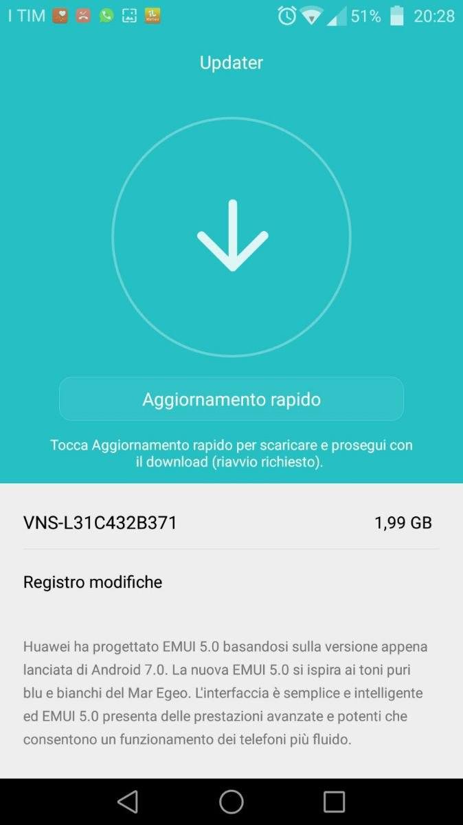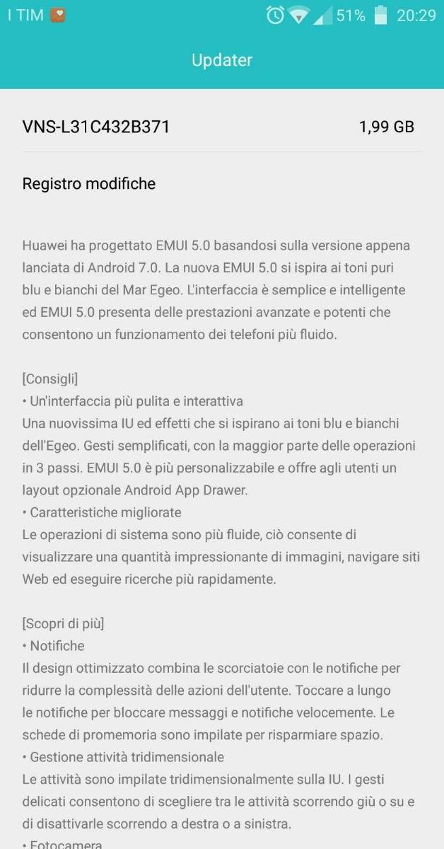 Nello specifico, il nuovo firmware VNS-L31C432B371, dal peso di ben 1.99 GB, integra al suo interno il sistema operativo Android 7.0 Nougat con le ultime patch di sicurezza Google e la nuova interfaccia proprietaria EMUI 5.0 nonché diverse ottimizzazioni.
