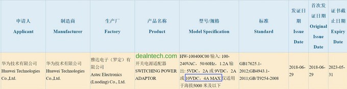 Se la recente certificazione non mente Huawei ha in serbo per i suoi clienti un nuovo caricabatterie che potrebbe superare i risultati portati avanti da Oppo con la sua ricarica Super VOOC. Nel 2016 il produttore ha mostra toun nuovo sistema di ricarica che permetteva di caricare completamente uno smartphone in soli 45 minuti grazie ad una configurazione 5V/8A.