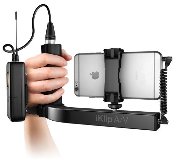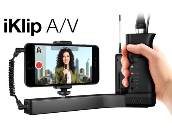 IK Multimedia, produttore di tecnologia Audio e video, ha trasformato la radiodiffusione mobile in realtà, riuscendo a dare un aspetto professionale agli smartphone, grazie a iKlip A/V. Questo è un nuovo sistema progettato per la trasmissione audio di alta qualità e video in movimento. Si tratta di una presa per mano-ferma, composta da una staffa espandibile che può contenere in modo sicuro qualsiasi iPhone, iPod o un dispositivo Android con un formato di schermo fra i 3,5 e i 6 pollici. L’impugnatura ha un preamplificatore microfonico incorporato con alimentazione phantom dove collegare un microfono esterno per la cattura audio e monitoraggio in tempo reale con un ottimo guadagno di controllo.