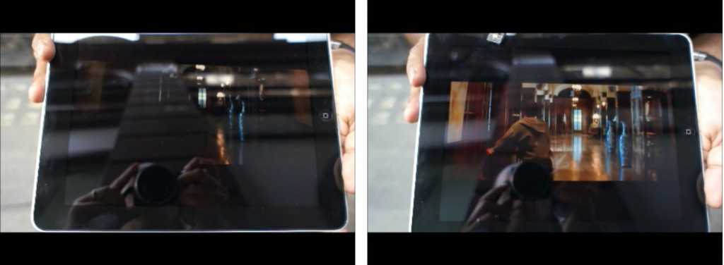 Display assertivo ( a destra) durante la visione di un film all’aperto in modalità Power Saving