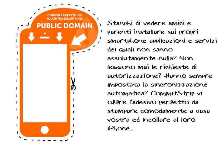 Se dunque desiderate essere spiritosi coi vostri amici o qualsiasi persona di vostra conoscenza e regalare loro questo fodero per iPhone, non vi resta che: ingrandire, stampare, ritagliare ed apporre intorno al display del loro dispositivo con un collante non troppo aggressivo il disegno che vi proponiamo a seguire… un giorno vi ringrazieranno!