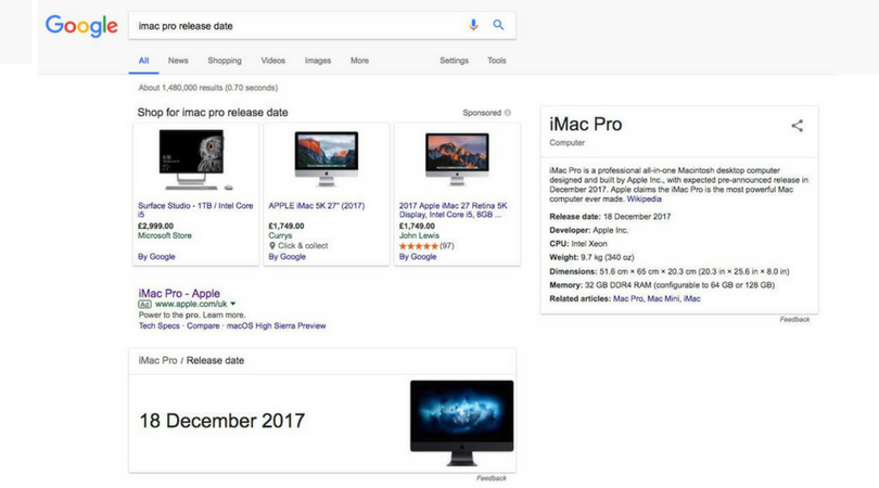 Presentato all’inizio dell’estate scorsa con l’intento di alzare l’asticella dei computer Apple in direzione di quei professionisti e creativi che negli ultimi tempi si sono sentiti un po’ abbandonati dalla Mela, iMac Pro dovrebbe ormai essere prossimo all’arrivo sui mercati, o per lo meno questo è quanto fanno intendere Google e la stessa Wikipedia nel caso si effettui una ricerca sul nuovo All In One professionale di Apple.