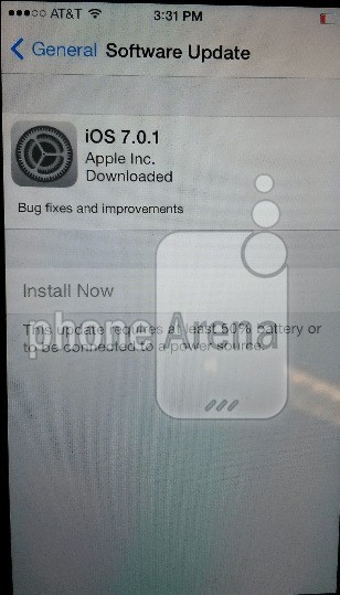 Poche ore fa un cliente Apple che si trovava in un negozio della compagnia telefonica Statunitense AT&T mentre provava il nuovissimo Apple iPhone 5C ha ricevuto una notifica della presenza del nuovo aggiornamento iOS 7.0.1 e ha prontamente scattato una foto che vi mostriamo qui sotto.