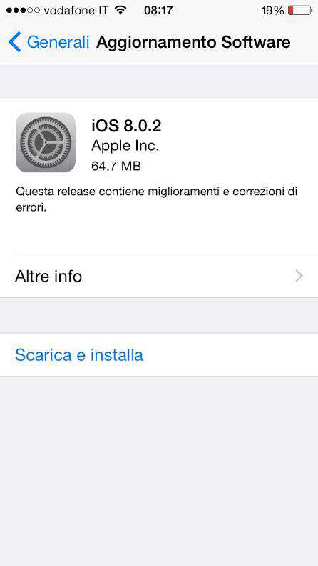Per poter installare il nuovo aggiornamento iOS 8.0.2, sarà sufficiente direttamente dal vostro iDevice, andare in Impostazioni -> Generali -> Aggiornamenti Software e procedere quindi al download ed alla installazione. Ovviamente è possibile procedere all’installazione anche collegando il proprio dispositivo al Mac o PC ed utilizzando iTunes.