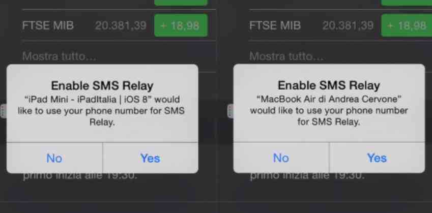 • Già vista nelle precedenti beta, SMS Relay ora assume un nome tutto suo e ci permette di inviare e ricevere SMS anche da iPad e Mac, oltre che da iPhone in modo sincronizzato. Se iniziamo a scrivere un SMS sul nostro iPhone lo potremo terminare in un secondo momento  sul computer Mac o sull’iPad. Ovviamente l’SMS risulterà spedito dall’iPhone dove è abilitata la connessione GSM; fattore determinante è la connessione Bluetooth attiva sui dispositivi e la vicinanza per farli comunicare tra loro.