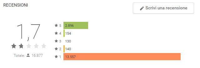 Altro problema per Apple è arrivato con “Passa a iOS“, la prima applicazione rilasciata dalla casa di Cupertino per dispositivi Android e da due giorni presente nel Play Store ufficiale Google. Nelle intenzioni di Apple. attraverso “Passa a iOS”, app gratuita e compatibile con dispositivi Android 4.0 o superiori, gli utenti con un dispositivo Android potrebbero passare ad un iPhone od iPad con estrema semplicità, trasferendo dati, contatti, foto e video, ma ovviamente l’arrivo dell’app ha di fatto scatenato l’ira, la fantasia e la voglia di scherzare degli utenti, che hanno deciso di commentare e votare negativamente l’app, che in poche ore ha ricevuto oltre 16.000 voti, ovviamente quasi tutti negativi, totalizzando un punteggio pari a 1.7 su 5 ed abbassando l’affidabilità dell’app nello store di Google.