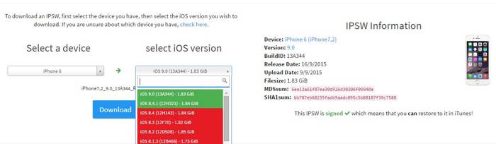 - Scaricare il file IPSW iOS 9 per il proprio dispositivo, attraverso i link sopra riportati, sul PC