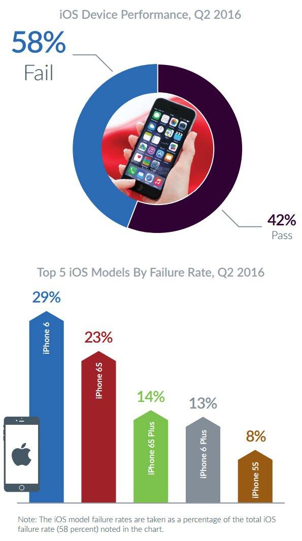 Per la prima volta nella storia, quindi, le ottimizzazioni e la cura riposta da Apple sul piano software dei propri dispositivi viene meno a favore di un OS Android che, anche sul piano delle vendite, ha surclassato il produttore di Cupertino, il quale spera in una seria rivincita e rilancio dei mercati nel breve periodo, con la presentazione del nuovo iPhone 7. Intanto, iPhone 6 ha registrato un’alta percentuale di unità difettose aventi malfunzionamenti (23%), così come anche per la versione successiva iPhone 6S (14%).