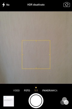 10. Foto “1:1″. Aprendo la fotocamere e spostando il cursore giallo alla voce “1:1″, avremmo la possibilità di scattare foto “quadrate”.