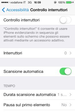 3. Motion Control. Questa funzionalità è disponibile in Impostazioni > Generali > Accessibilità > Controllo interruttori e ci consente di lanciare Siri o di attivare il tasto Home semplicemente inclinando la testa. Spostando la testa a sinistra, potremmo invece accedere al Centro Notifiche