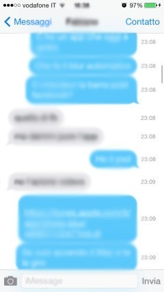 7. Orario nei messaggi. Spostando la nuvoletta del messaggio verso sinistra, potremmo visualizzare l’orario di ricezione o di invio del messaggio.