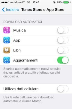15. Gestisci gli update automatici delle app. Nelle Impostazioni > iTunes e App Store puoi decidere di attivare o disattivare gli update automatici dall’apposita voce “Aggiornamenti”.