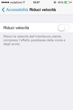 2. L’effetto Parallasse. Avete notato che le icone sullo schermo sembrano fluttuare e muoversi leggermente? Bene questo movimento è chiamato Effetto Parallasse e simula un effetto 3D con il movimento delle icone sulla Home o degli elementi sulla Lockscreen. Possiamo attivarlo o disattivarlo da Impostazioni > Generali > Accessibilità > Riduci Velocità. Disattivandolo, sarà possibile estendere la superficie di sfondo da impostare.
