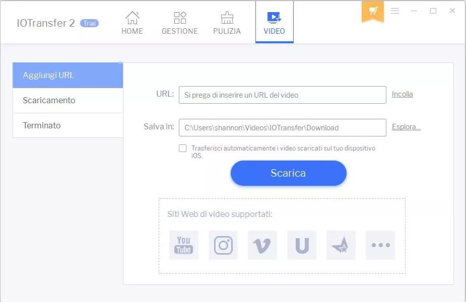 IOTransfer 2 può anche essere utilizzato come free online video downloader. Avremo infatti integrata all’interno del programma una comoda funzione che permetterà di scaricare i video dai siti più utilizzati in circolazione come YouTube, Facebook e Instagram, per poi convertirli e trasferirli sul nostro dispositivo.