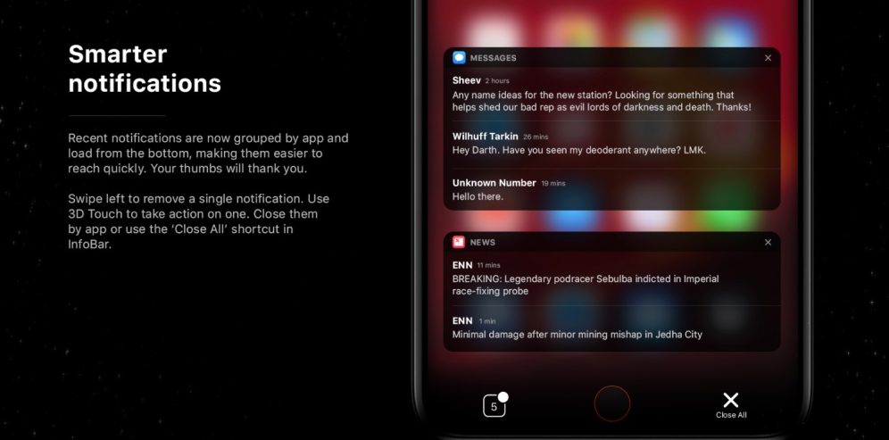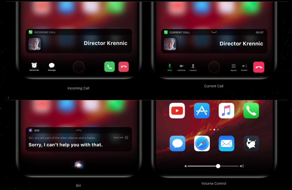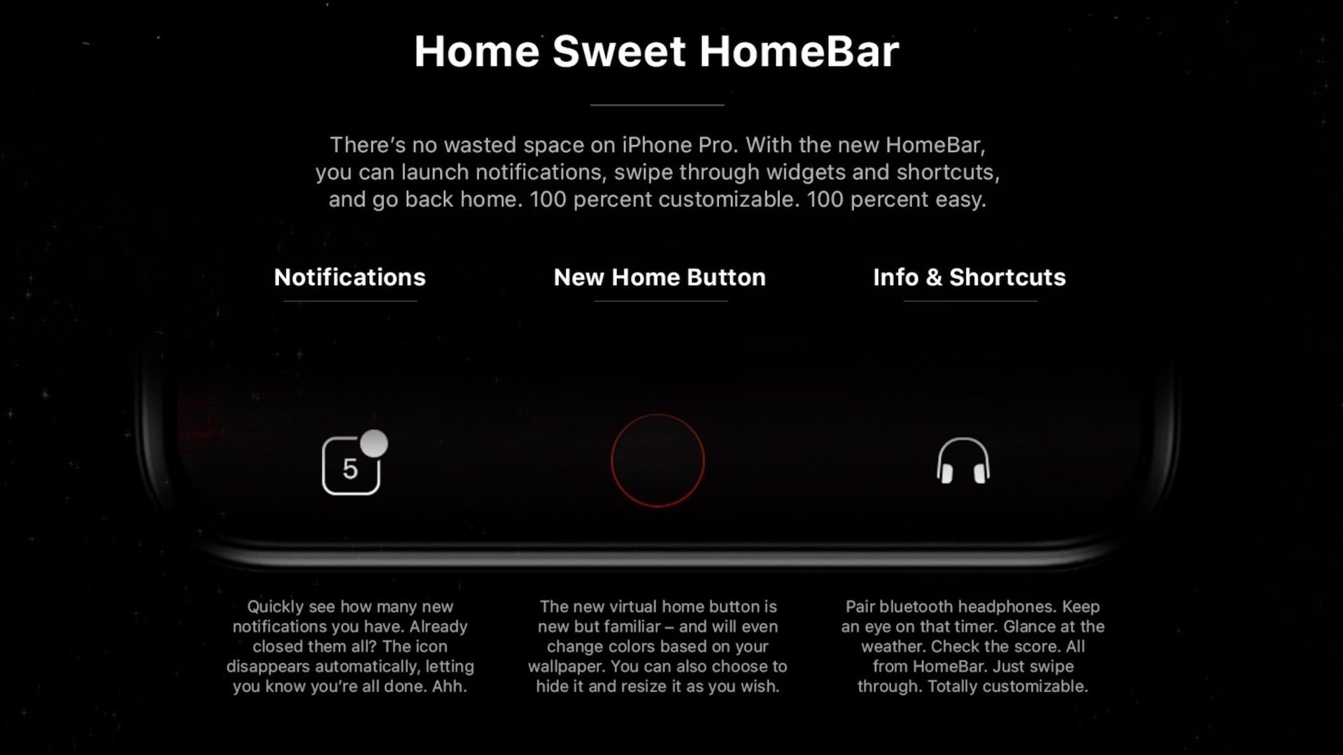 Alla base di questo concept vi è la nuova HomeBar, una sorta di bacheca virtuale in cui iOS 11 andrà ad inserire tutte le notifiche di rilievo che sono di interesse per l’utente. Grazie allo schermo OLED di iPhone 8 non ci saranno limiti tra cornice e schermo ed il tutto risulterà molto più bello. Al centro però sempre presente lui, il tasto Home virtuale che diventa questa volta molto più smart.